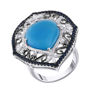 Кольцо из белого золота с бриллиантами, агатом и сапфирами