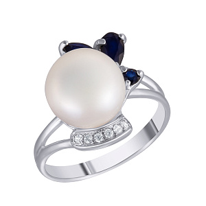 Кольцо из серебра с жемчугом, корундом, фианитом
