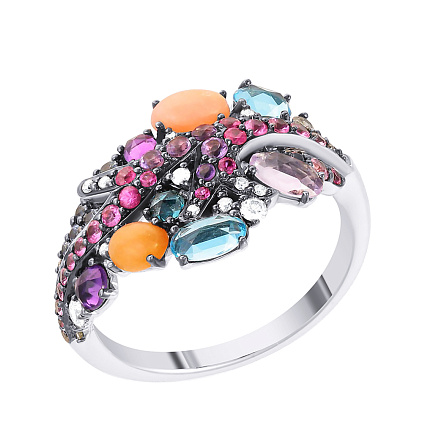 Кольцо из белого золота с бриллиантами, сапфирами, цветными