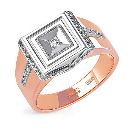 Кольцо мужское из красного золота с бриллиантами