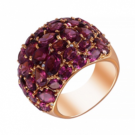 Кольцо из желтого золота с бриллиантами, родолитами