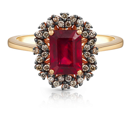 Кольцо из желтого золота с бриллиантами, рубином