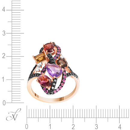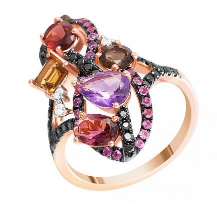 Кольцо из красного золота с бриллиантами, бриллиантами, сапфирами, цветными
