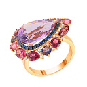 Кольцо из красного золота с бриллиантами, сапфирами