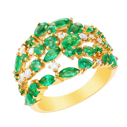 Кольцо из желтого золота с бриллиантами, изумрудами