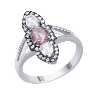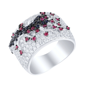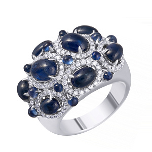 Кольцо из белого золота с сапфирами, танзанитами