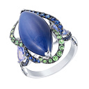 Кольцо из белого золота с цаворитами, сапфирами, танзанитами, сапфиром