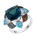 Кольцо из белого золота с бриллиантами, бриллиантами, топазами
