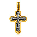 На лицевой стороне изображено распятие Иисуса Христа. Над ним нерукотворный образ Спасителя - один из самых сильных защитных символов православия. На обороте в центре чудотворный образ Божией Матери «Знамение» в окружении херувимов. Эта икона прославилась многими чудесами и чтится как одна из самых великих святынь Русской земли. Молитвенно воздетые руки Богородицы означают заступничество за людей пред Богом, молитву за мир. Ниже изображен святой Николай Чудотворец, самый любимый святой Православной Церкви. Святой почитается как целитель болезней, покровитель путешествующих, особенно по морю, помощник в торговле, учебе, а также в поисках достойного супруга.