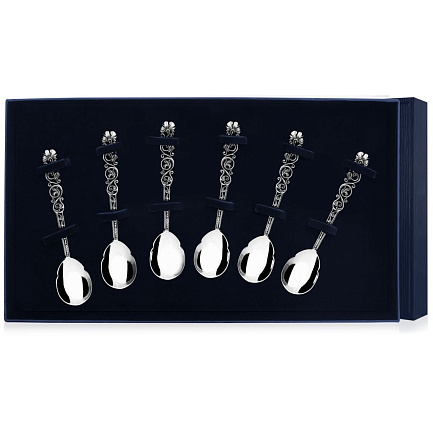 Набор чайных ложек из серебра "Подарочная" 6 предметов. Длина ложек 11.7 см