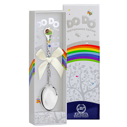 Тактильная серия детского серебра "Do Do" создана с учетом особенностей развития детей с самого раннего возраста и является важным и полезным инструментом для родителей. Изделия этой серии имеют специальный рельеф, который через тактильное восприятие способствует общему развитию ребенка, в том числе развивает мышление и речь, а яркий и оригинальный дизайн коллекции позволяет создать добрую и сказочную атмосферу и привлекает внимание малыша. Примерный вес ложки 20 г., длина ложки 12,5 см.