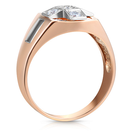 Печатка из красного золота с фианитом