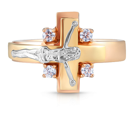 Печатка из красного золота с фианитом