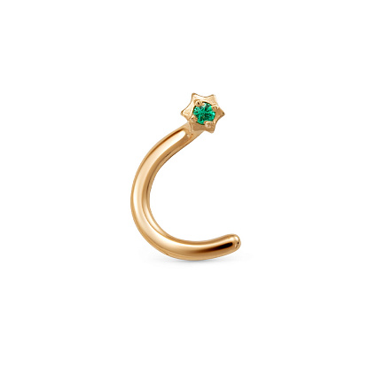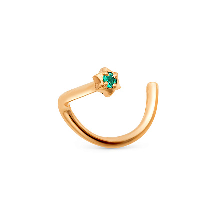 Пирсинг в нос из красного золота с изумрудом