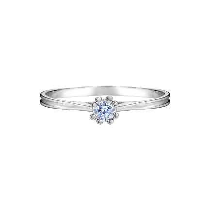 В состав бокса входят украшения из коллекции Признание: помолвочное кольцо и пусеты с бриллиантами из белого золота: