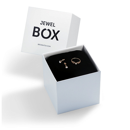 В состав Jewel Box входят украшения из коллекции Признание: помолвочное кольцо и пусеты с бриллиантами из красного золота.