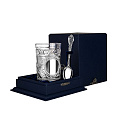 Литой серебряный набор из подстаканника с хрустальным стаканом и чайной ложки. Изготовлен из серебра 925 пробы. Выполнен по старинным технологиям российских мастеров г.Кольчугино