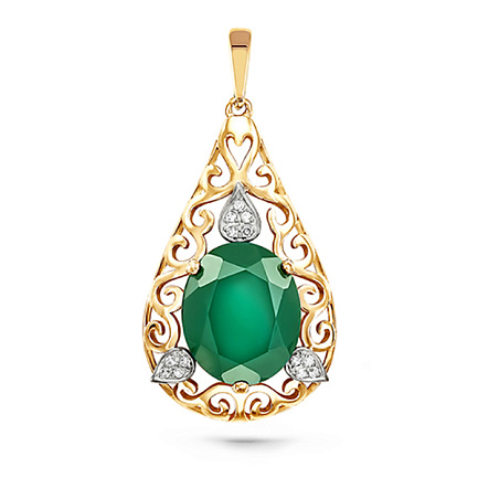 Подвеска из желтого золота с бриллиантами, ониксом
