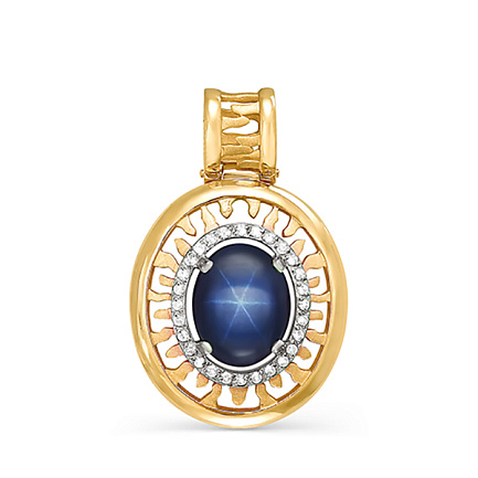 Подвеска из желтого золота с бриллиантами, сапфиром