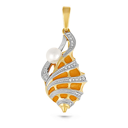Подвеска из желтого золота с бриллиантами, жемчугом