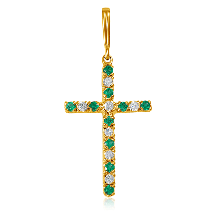 Подвеска из желтого золота с бриллиантами, изумрудами