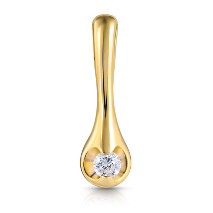 Стильная подвеска из желтого золота с бриллиантом входит в коллекцию «Отражение». Благодаря специальной технологии - многоступенчатой лазерной обработке, поверхность украшения приобрела зеркальный блеск, многократно увеличивающий сияние драгоценного камня. Бриллиантовая подвеска будет шикарно смотреться и с вечерним платьем и с деловым костюмом.