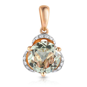 Золотая подвеска с зеленоватым аметистом и бриллиантами эффектно дополнит комплект из серег и подвески.
