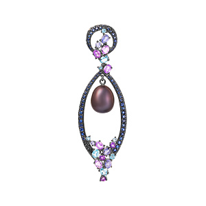 Подвеска из белого золота с сапфирами, жемчугом, иолитами, аметистами и топазами