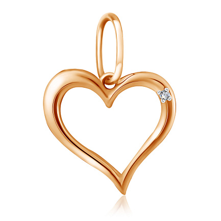 Подвеска сердечко из красного золота с бриллиантом