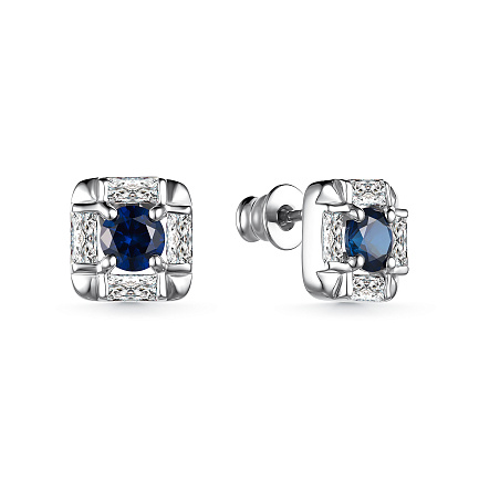 Пусеты из серебра с г.т.сапфирами, фианитами