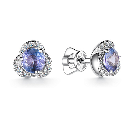 Пусеты из белого золота с танзанитами
