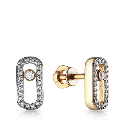 Пусеты из красного золота с фианитом