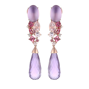 Серьги из красного золота с бриллиантами, аметистами