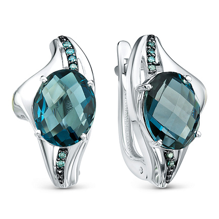Серьги из белого золота с бриллиантами, топазами