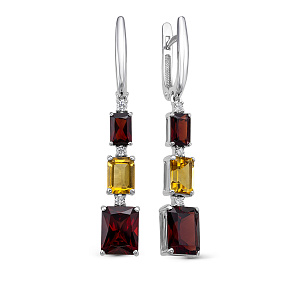 Серьги из белого золота с бриллиантами, гранатами