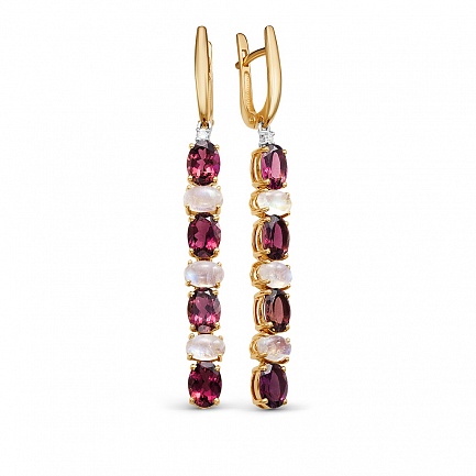 Серьги из комбинированного золота с бриллиантами, лунными камнями