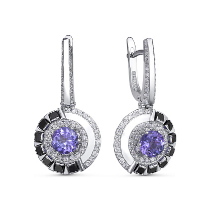 Серьги из белого золота с бриллиантами, танзанитами