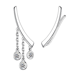 Серьги из серебра с хризолитами и фианитами и эмалью