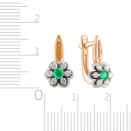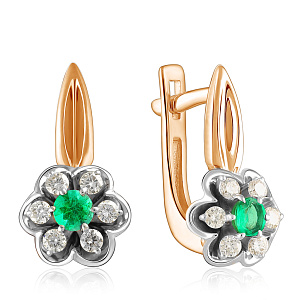 Серьги из красного золота с бриллиантами, изумрудами