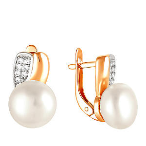 Серьги из красного золота с жемчугом, фианитом