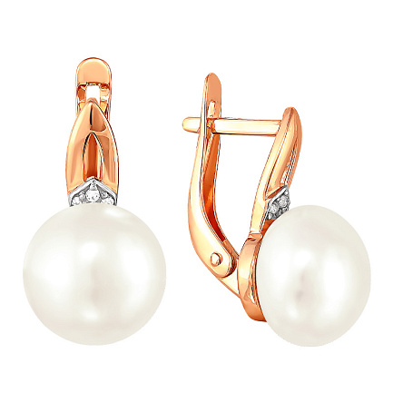Серьги из красного золота с жемчугом, фианитом