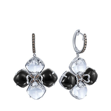 Серьги из белого золота с бриллиантами, топазами, ониксами