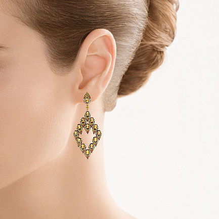 Серьги из желтого золота с бриллиантами, кварцами и сапфирами