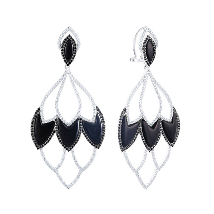 Серьги из серебра с ониксом, фианитом