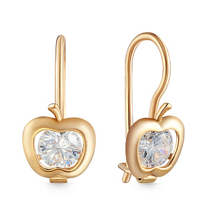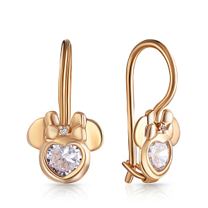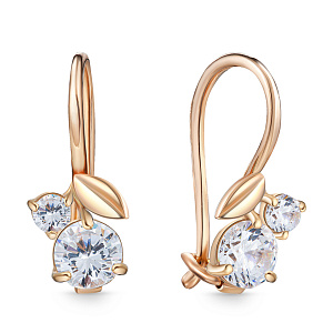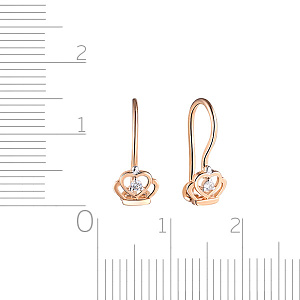 Серьги детские из красного золота с фианитом