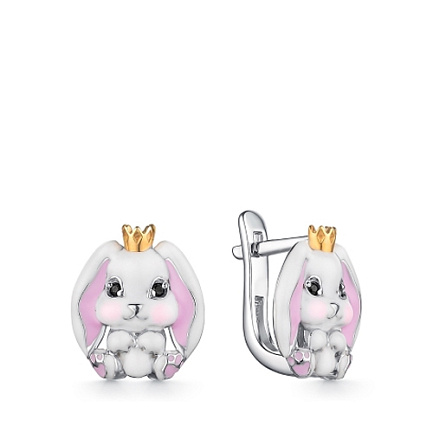 Серьги детские из серебра с эмалью, фианитом, золочением