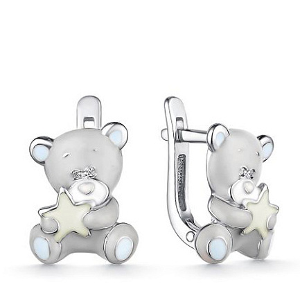 Серьги детские из серебра с фианитом, эмалью