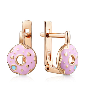 Серьги детские из красного золота с эмалью
