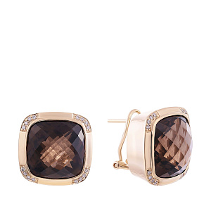 Серьги из желтого золота с бриллиантами, раухтопазами