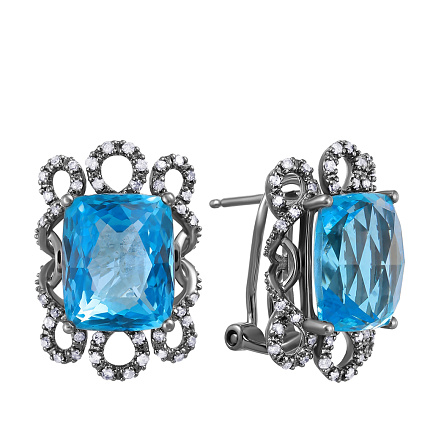 Серьги из черненого золота с бриллиантами, топазами
